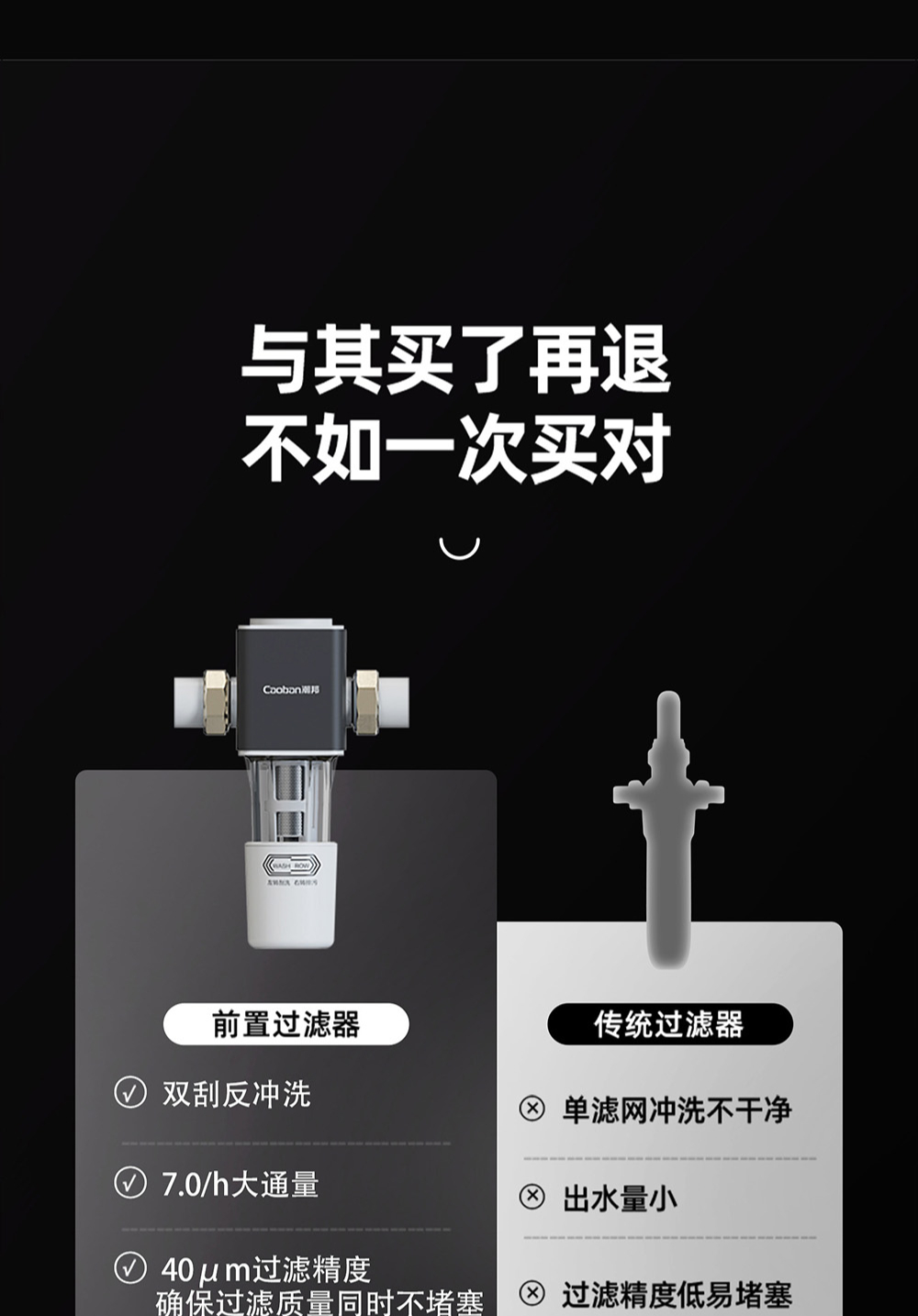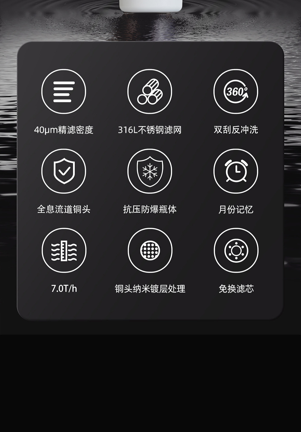 40μm精濾密度,316L不銹鋼濾網,雙刮反沖洗,全息流道銅頭,免換濾芯
