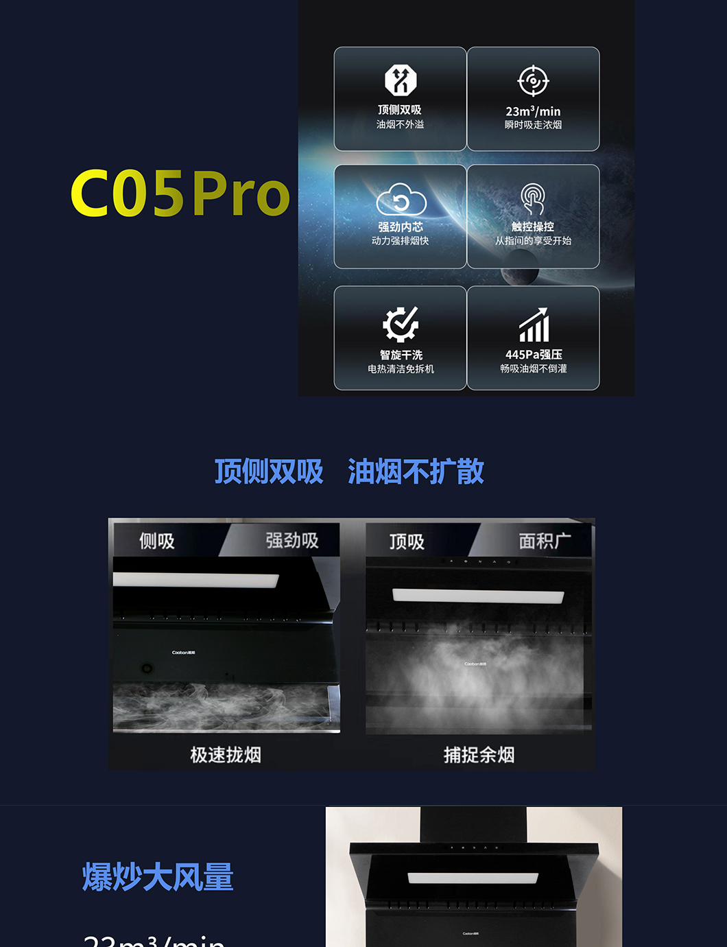 頂側雙吸,23方大吸力,觸控操控,智旋干洗,445Pa強壓