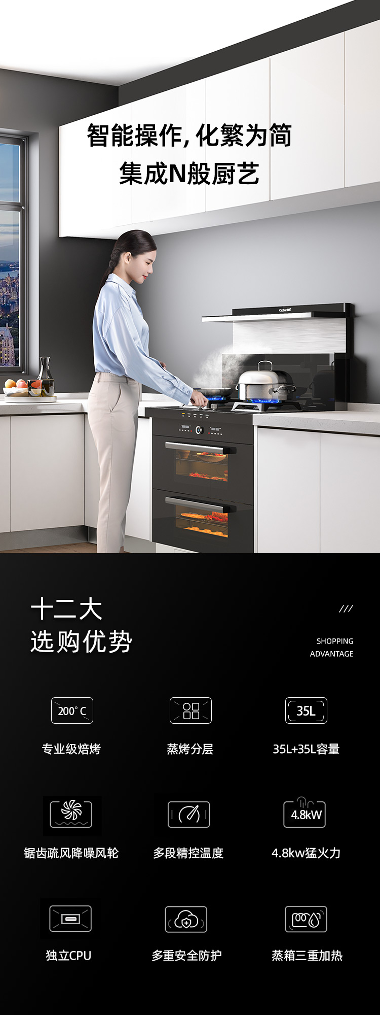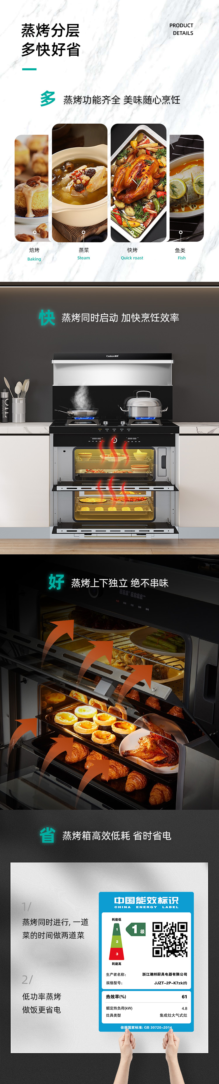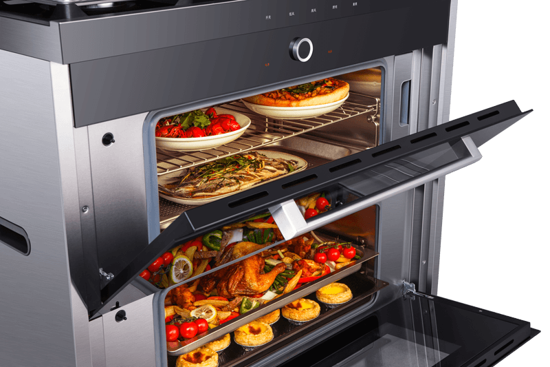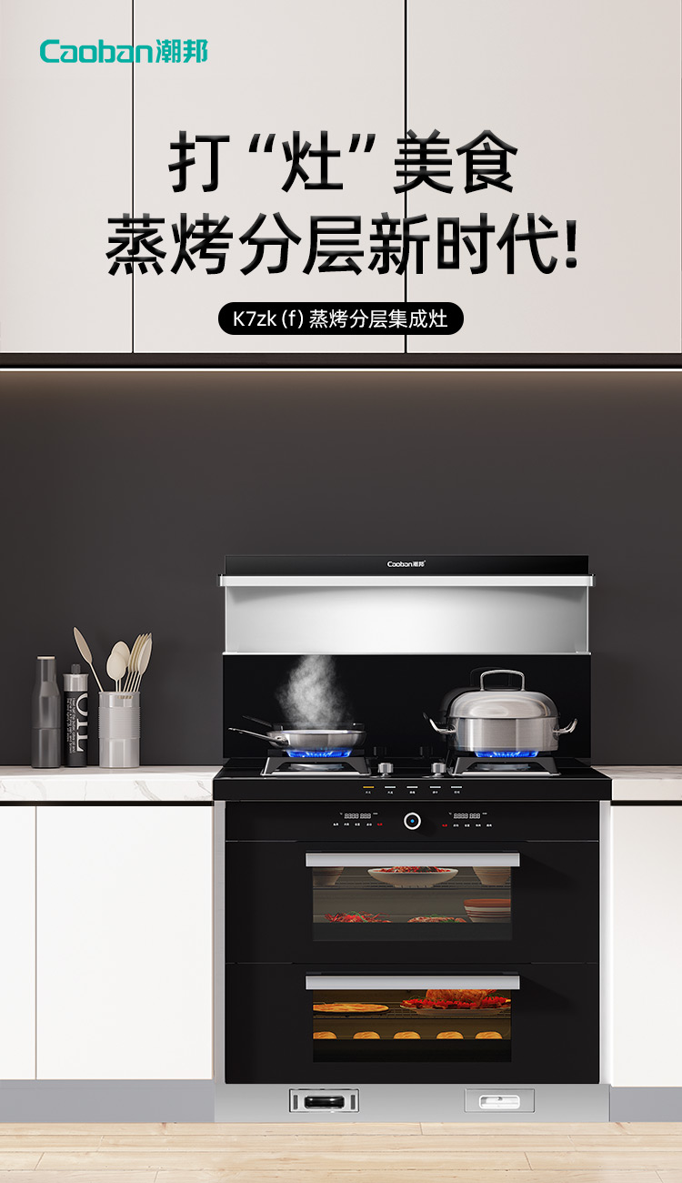 蒸烤分層集成灶,邊蒸邊烤,美味加倍,引領(lǐng)蒸烤分層新時代。