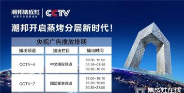 2021國慶,潮邦集成灶廣告將亮相央視的黃金時段! 10月4日起,潮邦集成灶廣告此次將覆蓋CCTV-4、CCTV-7兩大強勢頻道的核心新聞